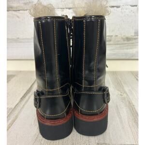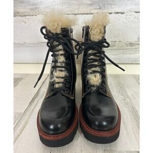 Coach Women’s 7.5 Black Leather Moto Hiker Shearling Platform Ankle Boots NEW