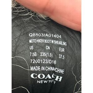Coach Moto Hiker boots, women’s size 7.5 shearling boots, black leather platform boots, Coach lace-up hiker style, women’s winter boots new, Coach shearling moto boots, designer black platform boots, Coach women’s lace-up leather boots