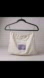 Lightweight Coach dust bag in natural cotton canvas with lavender Coach logo patch. Features a drawstring top and soft, breathable fabric ideal for storing handbags or accessories. Shows visible marks and wear throughout from prior use. Easy-care cotton can be gently hand washed and air dried. Great for protecting purses or reselling as replacement packaging.