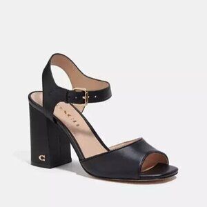 Coach Women's Black Leather Block Heeled Buckle Closure Marla Sandals Size 9