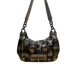 Coach Womens Black/Gold Canvas Abstract Siganture Print Crossbody Hobo Bag