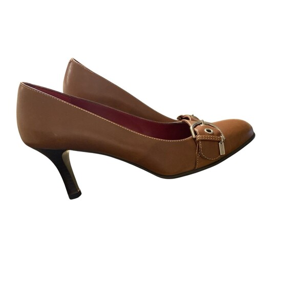 Coach Women’s Brown Leather Heels Sz 9.5B Buckle Accent Round Toe Classic Pumps