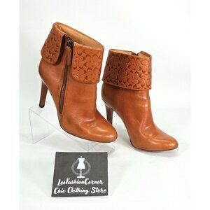 Coach Women's Brown Leather Mackenna Signature C Ankle Side Zip Boots Sz 7 1780