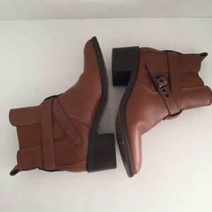 Coach Women's Buckle Chelsea Ankle Boots FG1002 Leather Dark Saddle Brown 7.5B