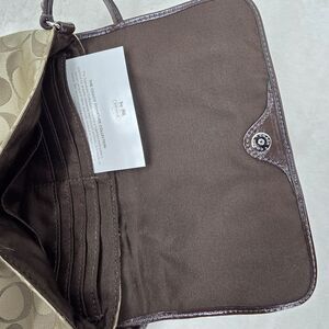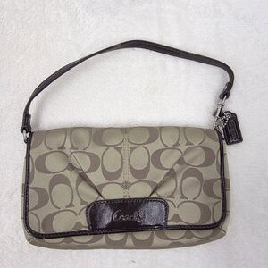 Coach Womens C Signature Flap Wristlet Clutch Purse Sateen Khaki OS