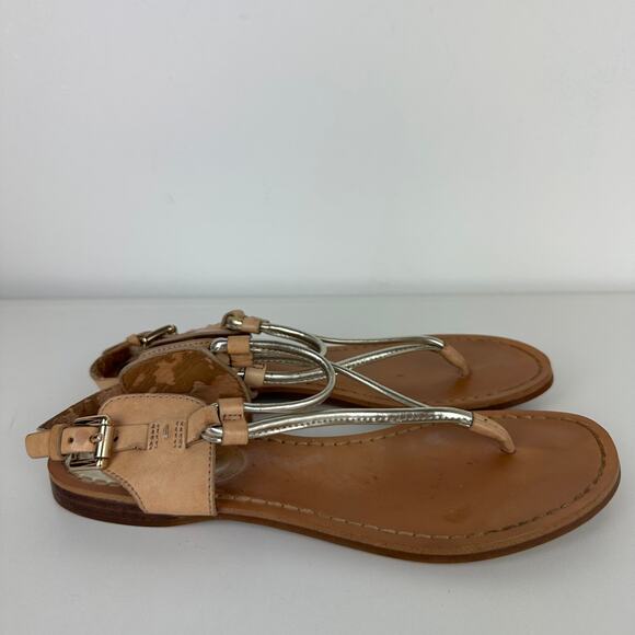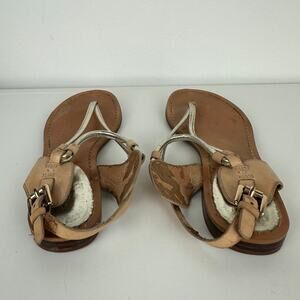 Coach Womens Cassandra Strappy Buckle Tan/Silver Thong Flat Sandals 5.5B FLAWED