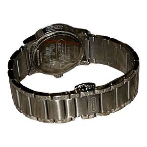 Coach Womens Chain Link Band Logo White Dial Silver Tone Watch EUC