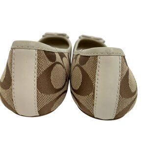 Coach Womens Cindie Flats Bow Beige & Brown 6M Y10664 Monogram Y10664 EUC
