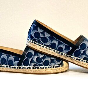 Coach Womens Collins Denim Espadrilles Slip Shoe Size 8 Navy Signature Canvas