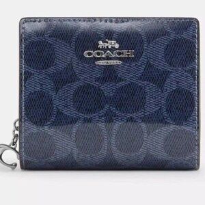 Coach Women's Dark Denim Signature Coated Canvas Snap Wallet NWT ❤️