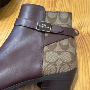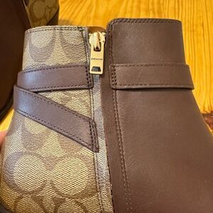 Coach Women's Dean Walnut/Khaki Leather Signature Bootie (CC627) Size 8.5B