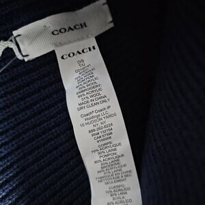 Coach Women's Deep Blue Embroidered Script Logo Knit Pompom Beanie Size One SizeSize