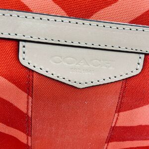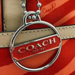 Coach Womens F23283 Orange Tan Canvas Zebra Print Leather Trim Tote Handbag