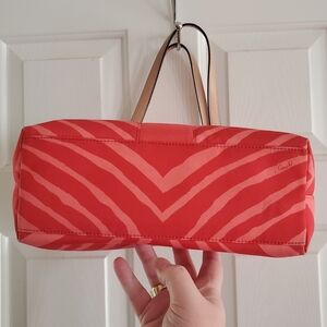 Coach Womens F23283 Orange Tan Canvas Zebra Print Leather Trim Tote Handbag