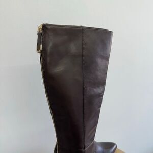 Coach Women’s Fayth Espresso Dark Chocolate Brown Leather Slim Short Heel Point Toe Boot
