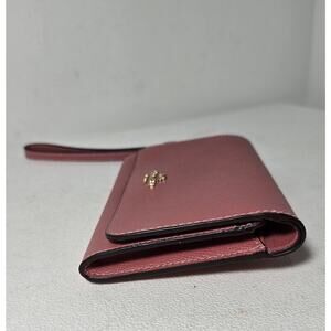 * Coach Women's Flap Phone Wristlet Wallet in Cross grain Leather Mauve Pink