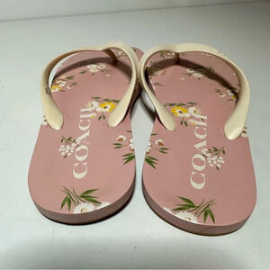 Coach Womens Flip Flops Floral Pattern Pink/Tan Size 8B (FG3437) see pictures for reference