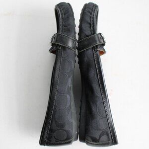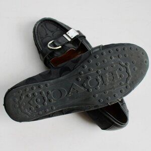 Coach Women's Flores Black Signature Logo Canvas Leather Flats Size 8.5