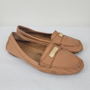 Coach Women's Fredrica Tan Slip On Loafers Size 9 Pebble Grain Leather