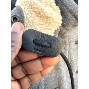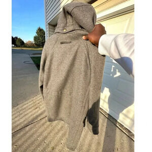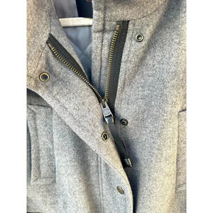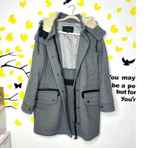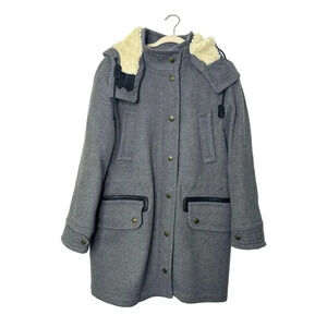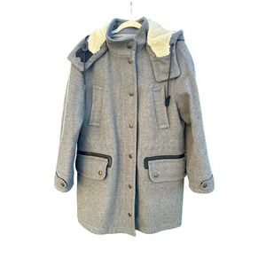 Coach Women’s Granite Gray Wool Coat Jacket With Hoodie And Leather Trims Size M