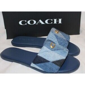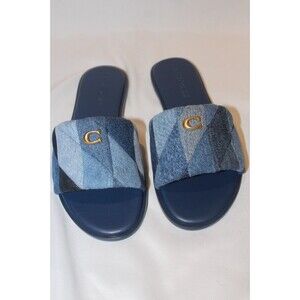Coach Women's Holly Quilted Patch Denim Sandals BLUE NIB SZ 6.5