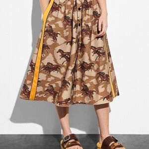 Coach Women’s Horse Print Pleated Midi Skirt With Side Panel Wool Blend Size 6