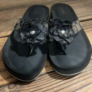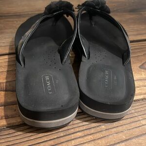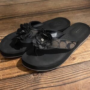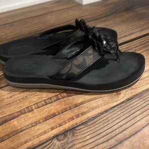 Coach signature sandals with black fabric floral accents. Perfect for casual outings. Great used condition women’s size 7