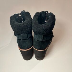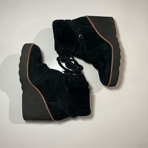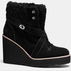 Coach Women's Kenna Black Shearling Sheepskin Ankle Wedge Snow Boots - 9.5
