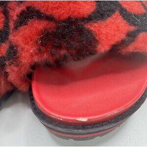 Coach Women's Khloe Slide Plush Shearling Sandals Raspberry Black Size 8.5