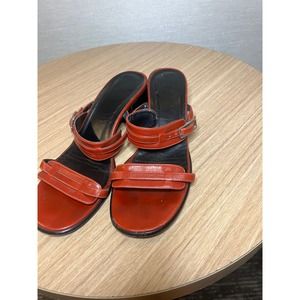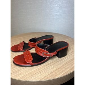 Coach Women's Leather Slide Sandal Block Heels Open Toe Buckle Straps Red Y2K