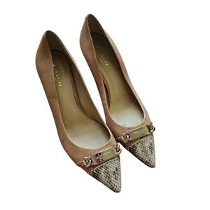Coach Women's Leather Tan and Cream Chain Detail Heels Shoes Size 6.5