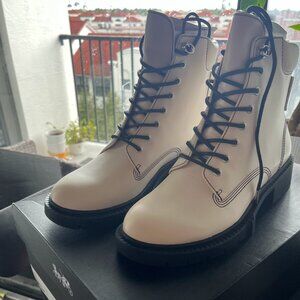 The Lorimer boot is a testament to Coach’s rich heritage as artisans of handcrafted leather goods. Drawing on the traditional combat boot silhouette, they’re sculpted from smooth white leather with contrast lacing, stitching and soles.