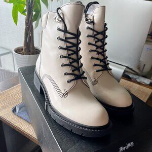 Coach Women's Lorimer Leather Lace Up Boots - Chalk