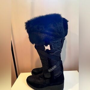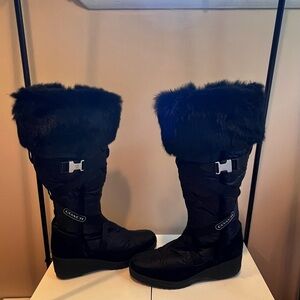 Stylish Coach boots with plush fur trim. Perfect for winter wear. Durable and chic. Wedge boot size 8b in like new condition No box