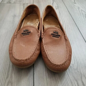 Coach Women's Mary Lock Up Driver Leather Loafer Shoes Size 6.5 Tan Slip On