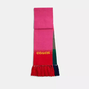 Coach Women's Merino Wool Multicolor Colorblocked Ombre Logo Knit Scarf