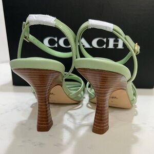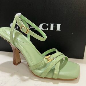 Elegant mint green heels with chic straps. Perfect for stylish occasions.