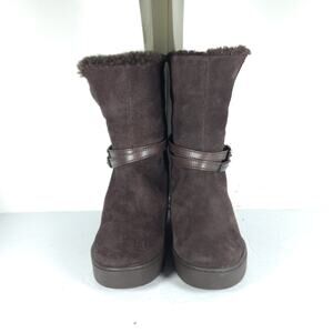 Coach Women's Norell US 7B Brown Suede Fold Down Sherpa Wedge Shearling Boots