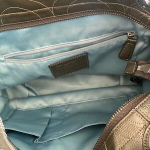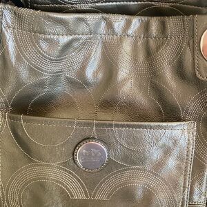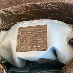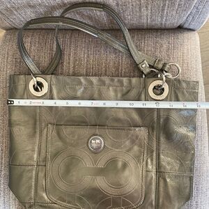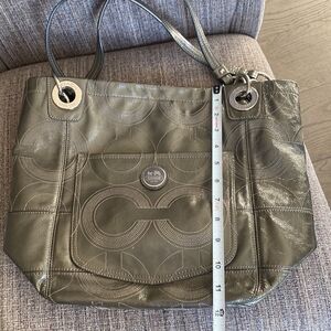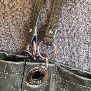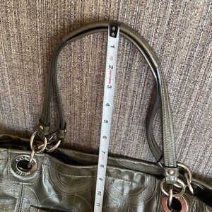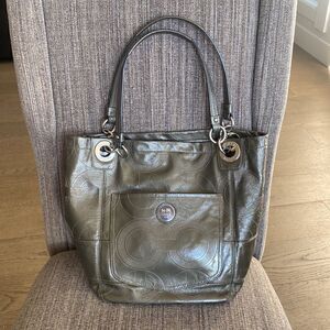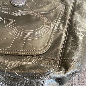 Coach Women’s Patent Leather Gray Stitched Monogram Top Zip Shoulder Handbag