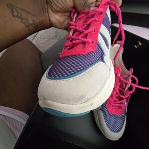 Vibrant Coach City Sole sneakers with pink and cream accents. Stylish and bold for any look. I typically wear a size 10/42 EUR, and these were too cute to pass up but unfortunately I can not force whats not for me. I hope these find their true home. These are in good used condition with some minor scuffs to the front. I've worn them maybe 5x.