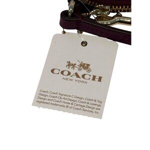 Crafted from luxurious plum pebble leather, this stylish wristlet bag by Coach is perfect for on-the-go convenience. Its compact design offers ample space for essentials while maintaining elegance.