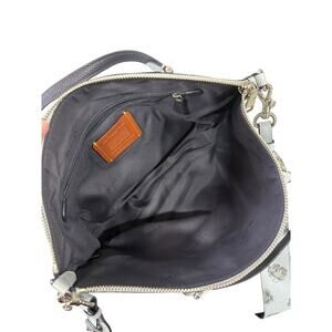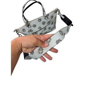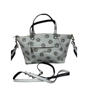 Coach Womens Prairie Satchel With Rose Print Light Blue Leather Handbag Purse