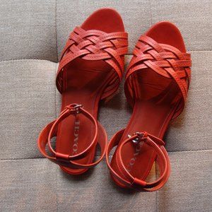 Step out in style with these elegant red sandals from Coach. Perfect for any occasion, these shoes offer both comfort and fashion.