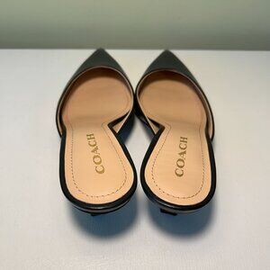 Combine ease and sophistication with Coach's smooth leather Renn mule. Featuring a pointed-toe and kitten heel, the slip-on style is finished with a comfortable padded footbed and Coach Signature hardware for a heritage touch.