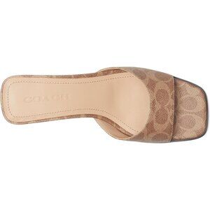 Coach Women's Sculpt C Sandals Tan Slip-On Designer Logo Pattern Casual