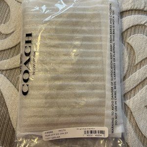 Signature coated canvas and smooth leather - Two credit card slots - Zip-top closure - Fabric lining - Wrist strap attached - 6.25" (L) x 4" (H) x .5" (W) - Retails for $78