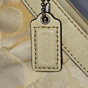 This Coach wristlet encapsulates the perfect blend of elegance and functionality. Adorned with the signature Coach pattern and crafted from premium leather and fabric, it offers a sophisticated look. The wristlet's versatile beige hue ensures it complements any outfit, while the zip closure provides security for your essentials.