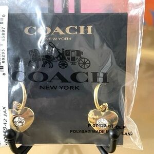 Coach Women's Signature Heart Dangle Drop Huggie Earrings Gold-Tone NWT Dust