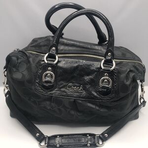 Coach Women’s Signature Logo ~ Large ~Black On Black Satchel Handbag W/ Strap