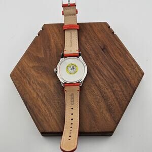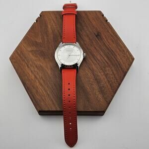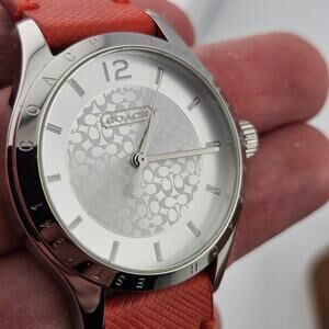 Coach Women's Silver Tone Logo Dial Watch Red Leather Band Classy Office Career
